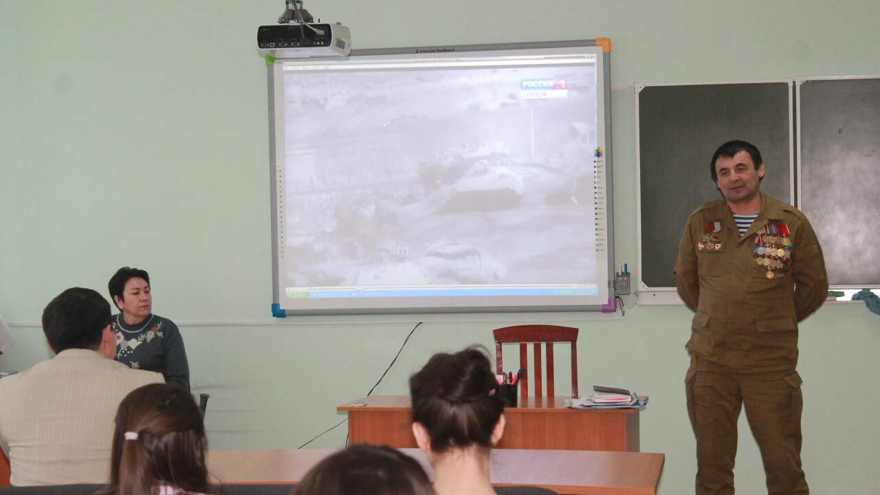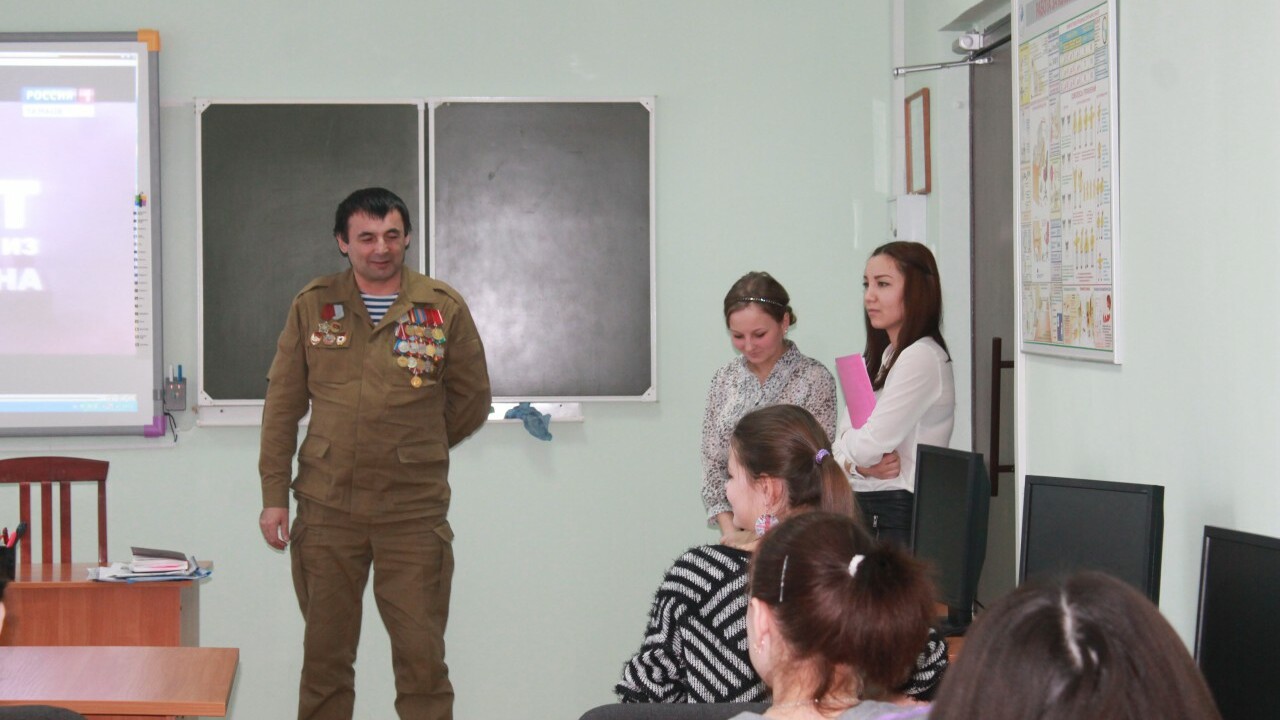 Со студентами встретился участник боевых действий, председатель региональной общественной организации «Башкирский союз ветеранов боевых действий» Тимерьян Ражапов. Он рассказал учащимся колледжа о военной службе советского солдата в Афганистане, а также о военно-патриотической работе ветеранов боевых действий в Башкирии.