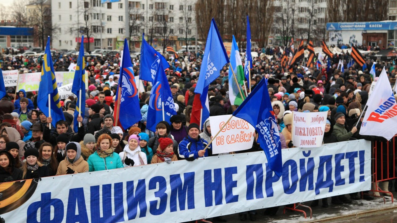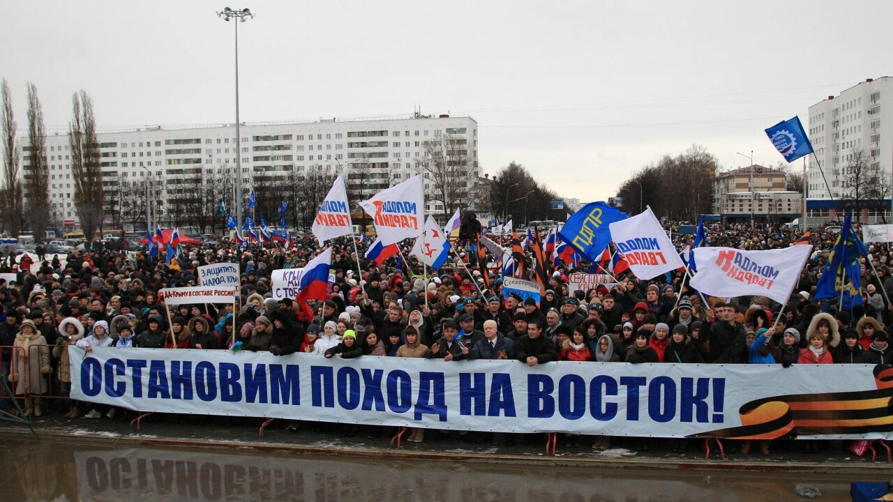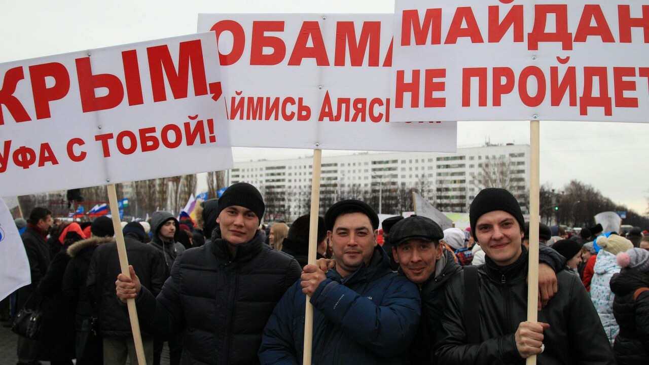 Сход представителей партийных, ветеранских, национальных, молодежных, студенческих, спортивных и иных общественных организаций Башкирии состоялся на площади перед Дворцом спорта в Уфе. Более семи тысяч уфимцев собрались, чтобы выразить свою солидарность крымскому народу. Организатором выступила Ассамблея народов РБ.