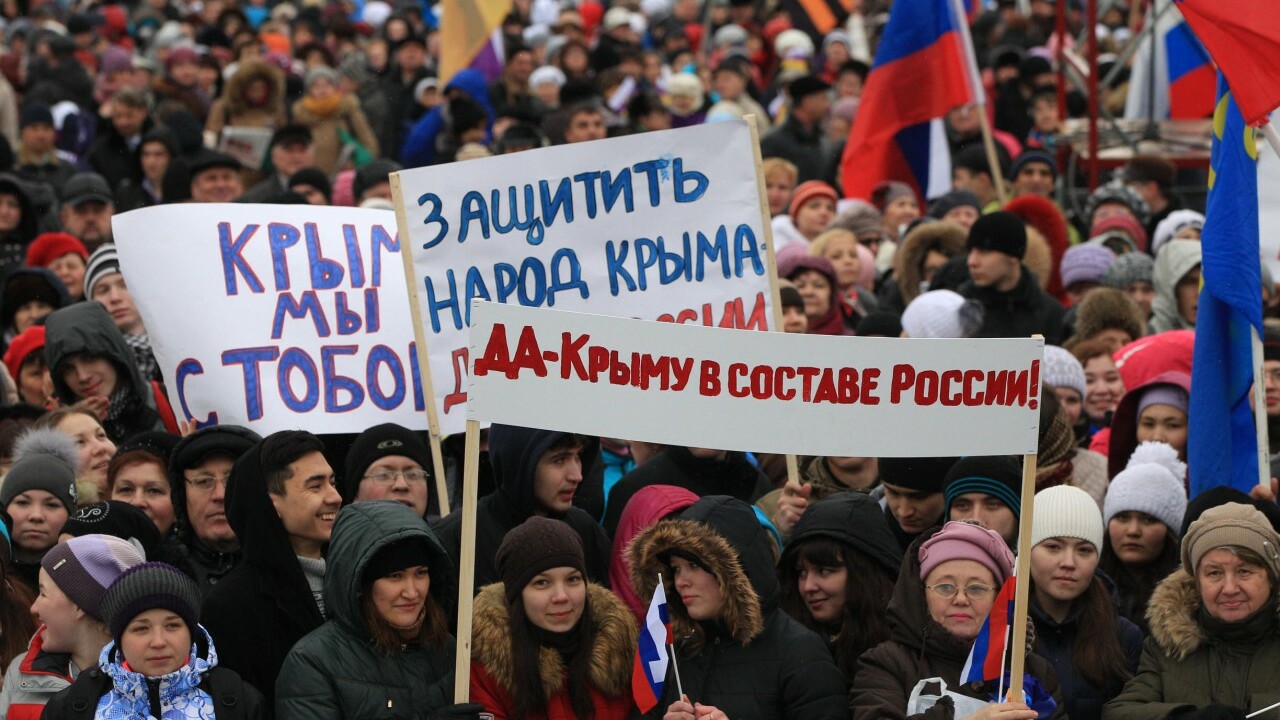 Участники многотысячного митинга постановили «поддержать историческое решение народа Крыма о вхождении в состав Российской Федерации и обратиться к Президенту России Владимиру Путину с просьбой использовать все полномочия в соответствии с Конституцией для скорейшего воссоединения Крыма с Россией».