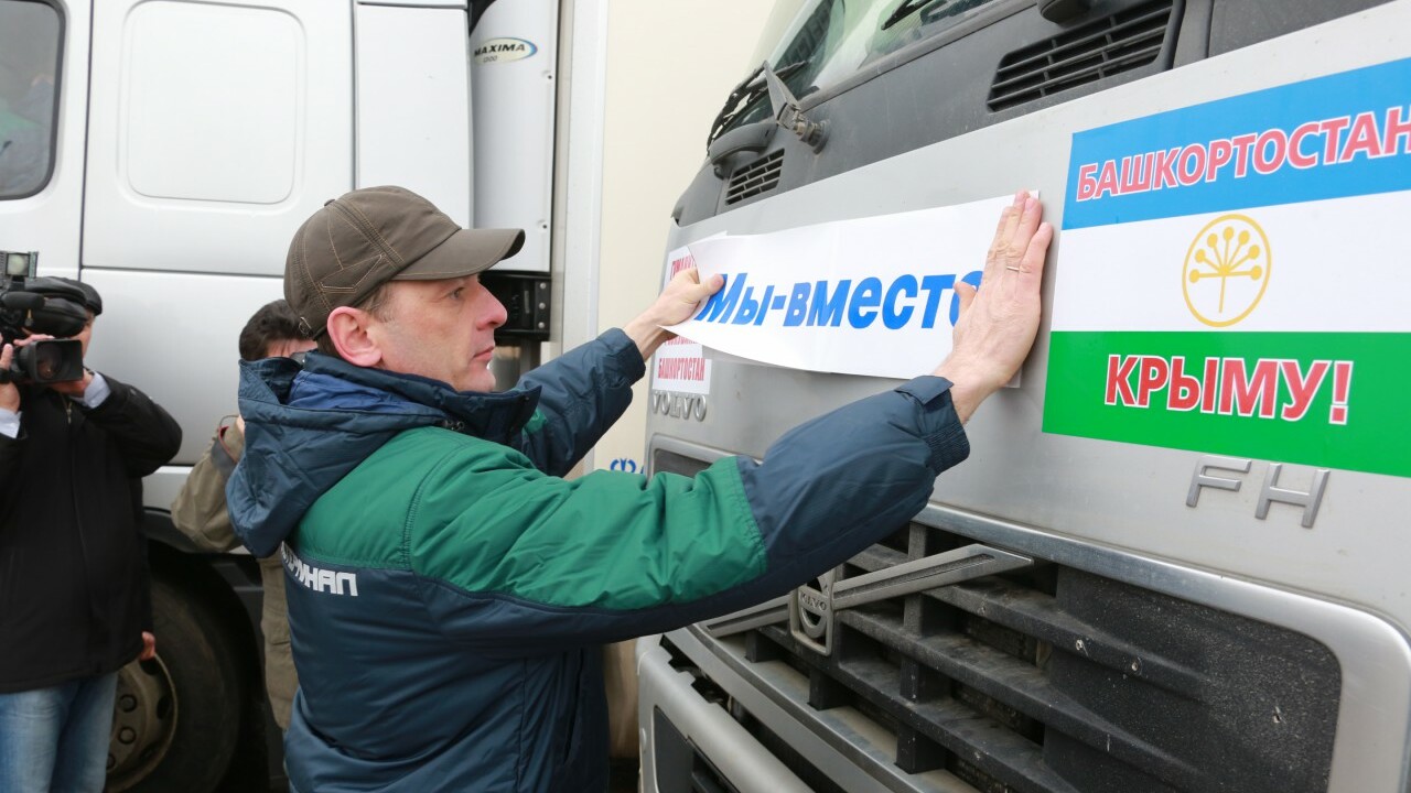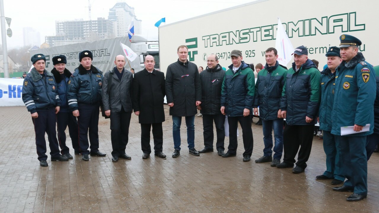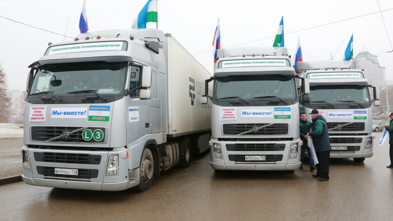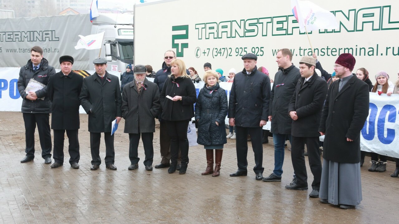 24 марта в Уфе на площади перед Монументом Дружбы состоялась отправка гуманитарного груза жителям новых регионов России на Крымском полуострове. Башкортостан одним из первых среди субъектов страны заявил о готовности помочь крымчанам. Груз с продовольствием и медикаментами был сформирован по поручению Президента Башкортостана Рустэма Хамитова за счет резервного фонда Правительства республики. По словам организаторов, «это не просто гуманитарный груз и материальная поддержка, а прежде всего жест доброй воли и сердечный порыв помощи братскому народу».