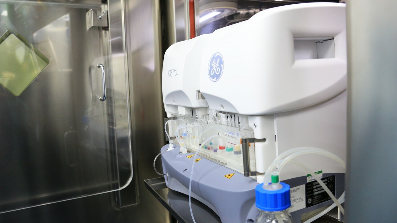 В уникальном циклотроне в ПЭТ-центре производятся дозы вещества - радионуклида фтора 18, оттуда по трубкам оно переходит в модуль синтеза радиофармпрепаратов. Здесь автоматизированная система нарабатывает фармпрепарат - фтордезоксиглюкоза (ФДГ). Он вводится пациенту и помогает визуализировать расположение ракового очага.