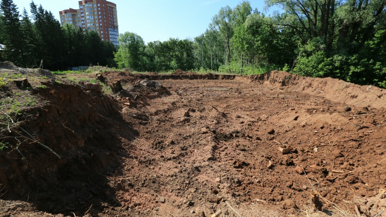 репортаж с места незаконной вырубки. Сейчас на месте лесного массива — котлован. А экскаватор до появления на месте представителей штаба ОНФ и мэрии Уфы продолжал его углубление.