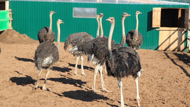 На ферме содержатся более 20 птиц, уже подрастает новое потомство: приплод этого года составил шесть страусов. Также в хозяйстве обитают павлины, декоративные куры, цесарки, фазаны и белая верблюдица по кличке Актау, завезенная из Астраханской области. Их разведением занимается местная семья в составе шести человек. Идея заняться фермерским хозяйством появилась после того, как семейство вернулось на малую родину с севера.