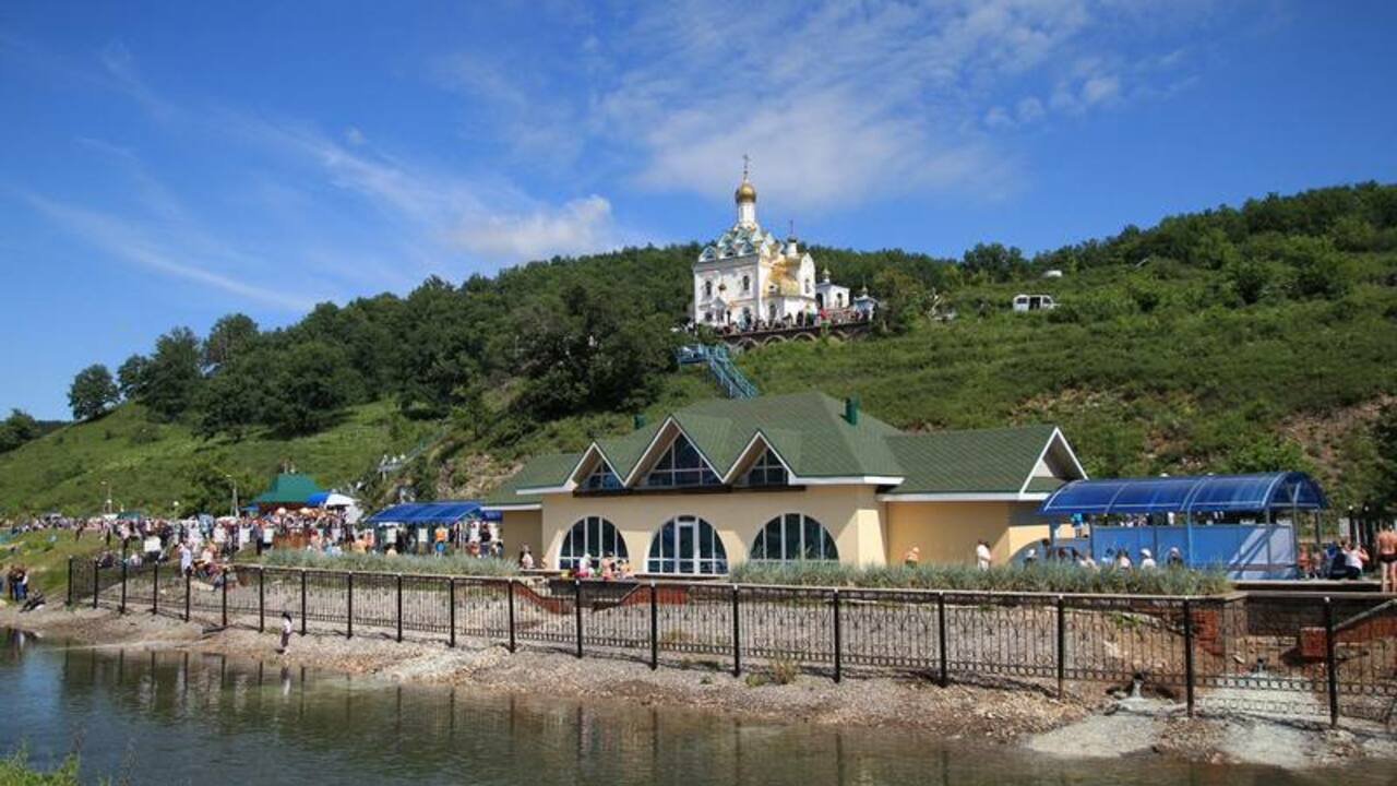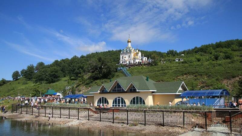 В нагорном храме вблизи монастыря на Святых ключах продолжают идти божественные литургии и богослужения прихожан.