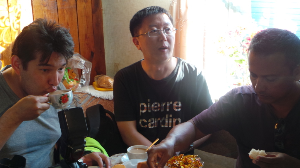 После утомительной дороги гости решили остановиться на берегу Агидели, сфотографировать местных жителей. Потом была долгая дорога на турбазу возле пещеры Шульган-Таш - на сегодня, 27 июня, запланировано ее посещение.