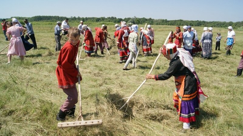 Фольклорные коллективы района - башкирский, русский, татарский, чувашский, мордовский представили свои обряды, связанные с началом сенокоса, угощали национальными блюдами, чаем с травами, айраном, подбадривали песнями, частушками.