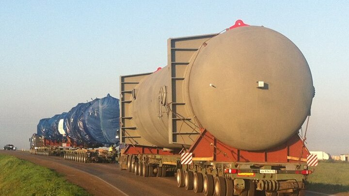 Учитывая внушительные габариты автопоездов, перевозящих оборудование для производства акриловой кислоты, возможны затруднения движения транспортных средств по маршруту его следования. О перевозке второй очереди оборудования сообщат дополнительно.