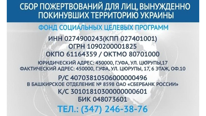 Сегодня, 13 августа, в прямом эфире Башкирского спутникового телевидения проходит телемарафон «Мы вместе» по сбору средств для помощи беженцам с Украины. Акция проводится телеканалом БСТ при поддержке Правительства РБ, а также Фонда социальных целевых программ.