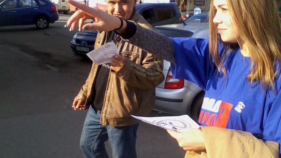 УФА, 24 сен 2014. /ИА «Башинформ», Арина Рахимкулова/. Активисты местного отделения «Молодой Гвардии Единой России» провели в Бирске акцию против курения, чтобы в очередной раз напомнить жителям города о необходимости соблюдения антитабачного закона.