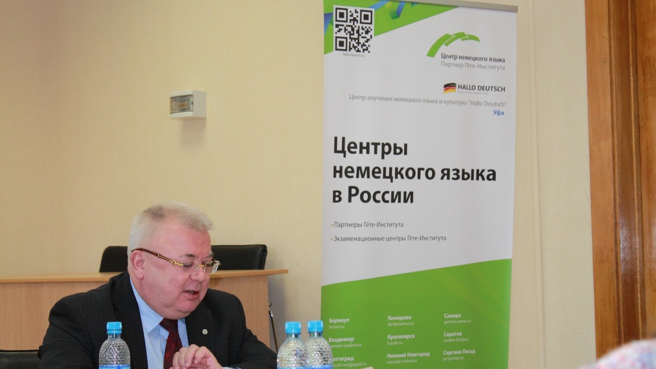 УФА, 2 дек 2014. /ИА «Башинформ», Арина Рахимкулова/. В Башкирской академии государственной службы и управления при Президенте РБ состоялся международный круглый стол «Немецкий для жизни, карьеры и бизнеса». Форум стал ключевым мероприятием проекта «Гёте в Уфе», который посвящен вступлению Центра изучения немецкого языка и культуры «HalloDeutsch» в международную партнерскую сеть языковых центров Гёте-Института. Конференция в Уфе смогла объединить руководителей и представителей организаций в различных сферах деятельности, таких как образование, культура, бизнес, молодежные объединения для конструктивного диалога по вопросам международного сотрудничества Башкортостана и Федеративной Республики Германии.