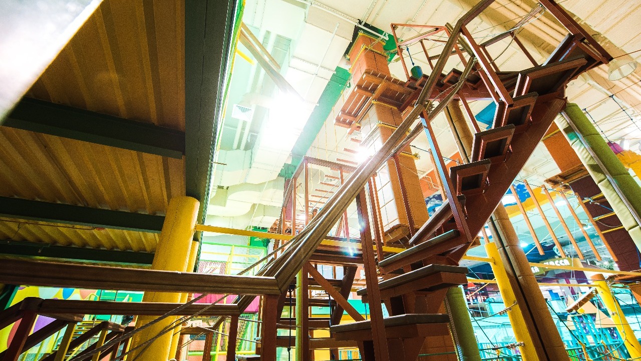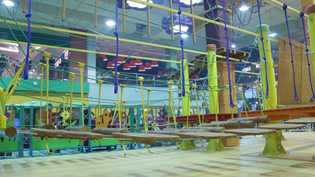 - Для самых маленьких подойдет трасса высотой 30-50 сантиметров над уровнем пола. Самая сложная трасса для взрослых — на уровне 8-10 метров, — рассказал Александр Заварухин.