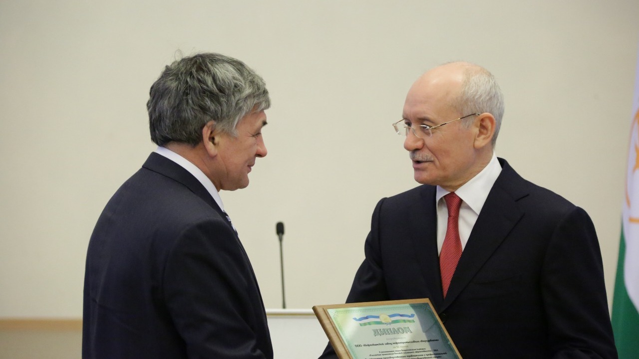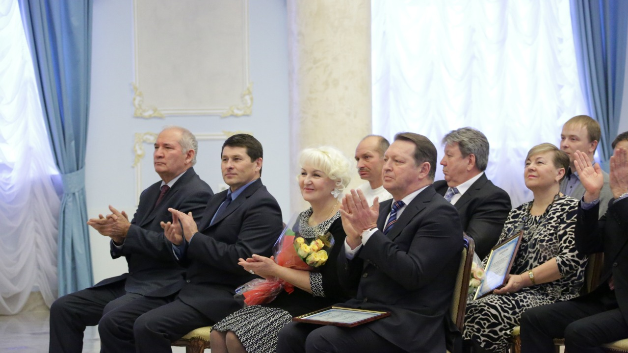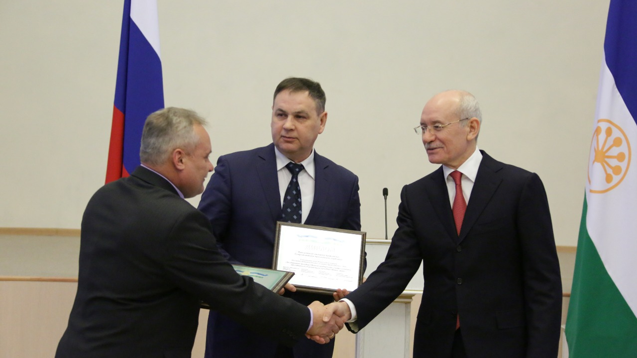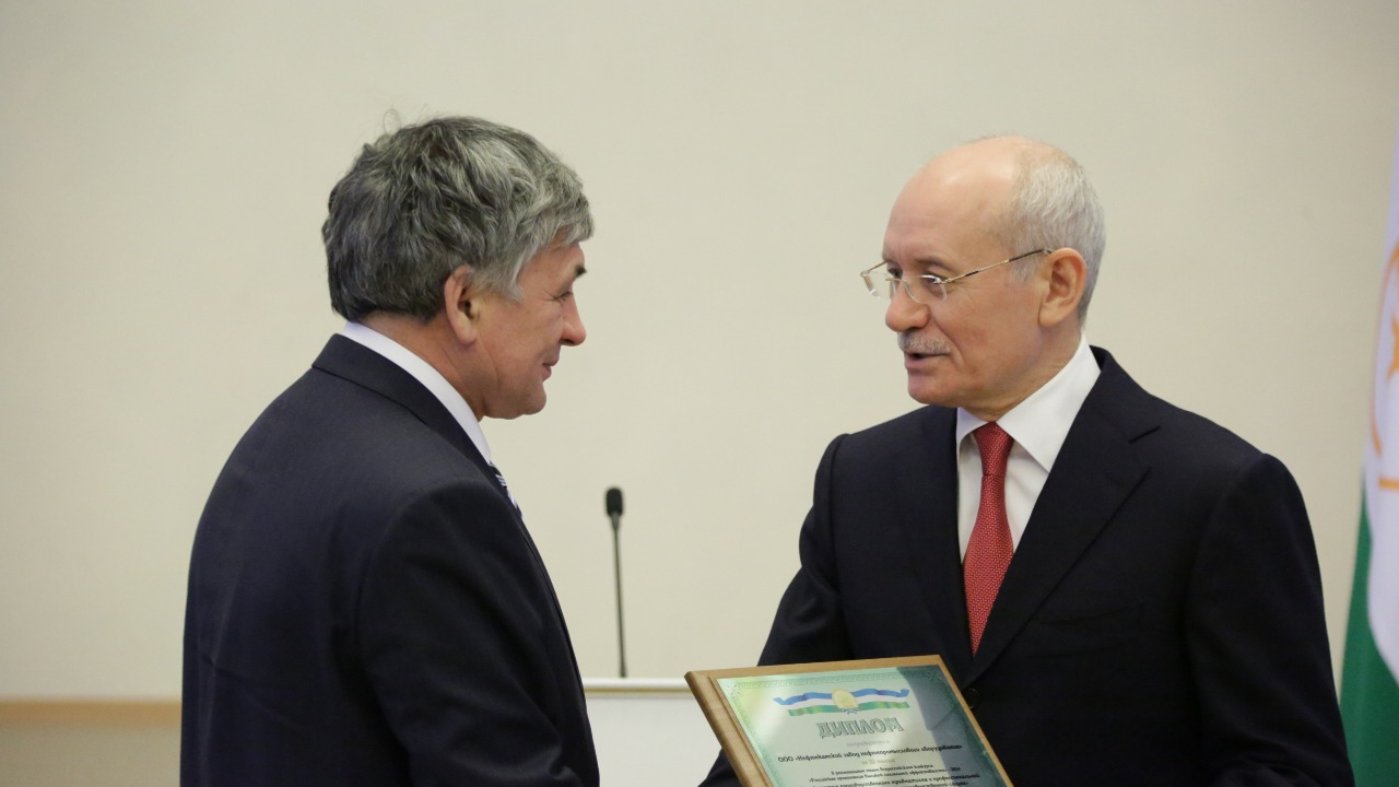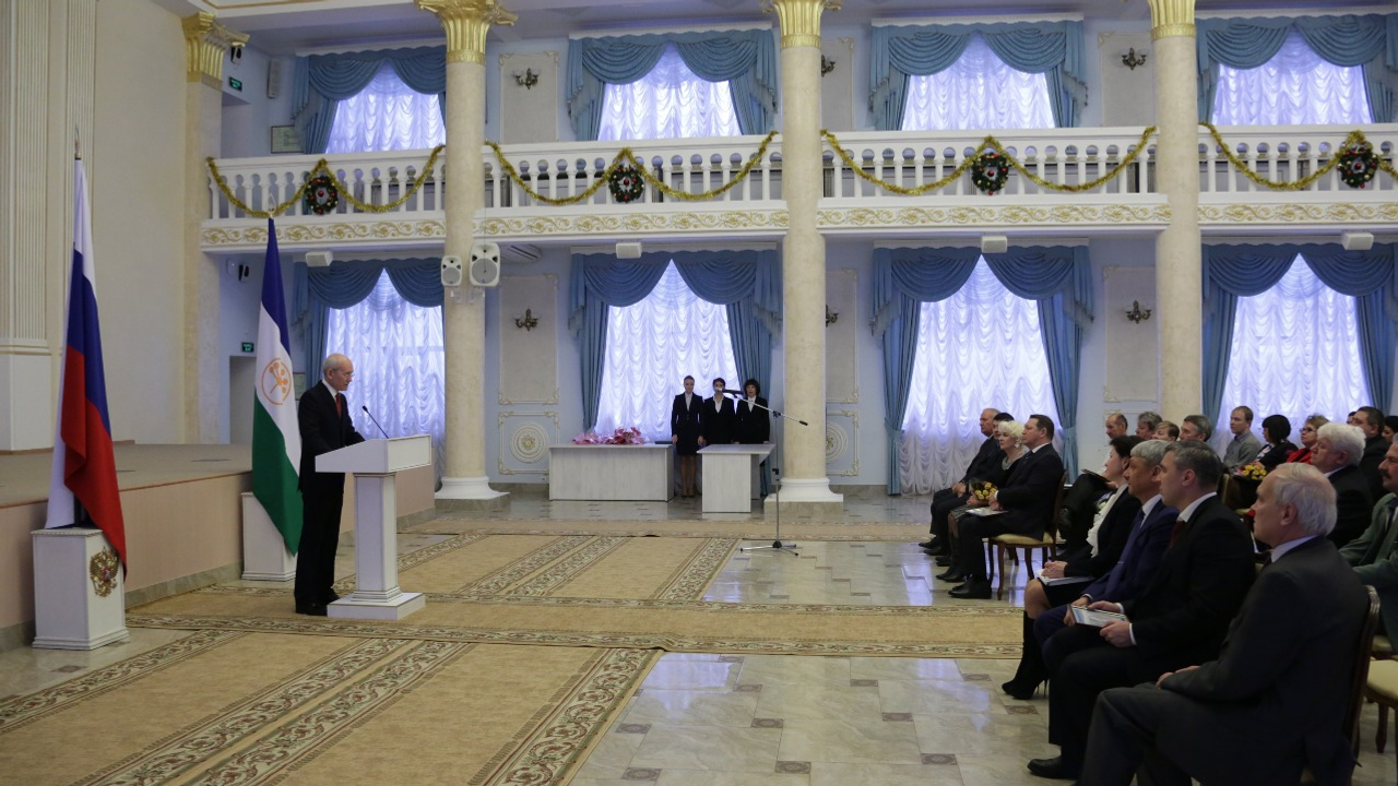 УФА, 30 дек 2014. /ИА «Башинформ», Илья Спиридонов/. Президент Башкортостана Рустэм Хамитов вручил дипломы и почетные грамоты победителям и призерам региональных этапов всероссийских конкурсов «Российская организация высокой социальной эффективности» и «Лучший по профессии», а также республиканского конкурса «Лучшее предприятие для работающих мам», проведенных в 2014 году в рамках социального партнерства.