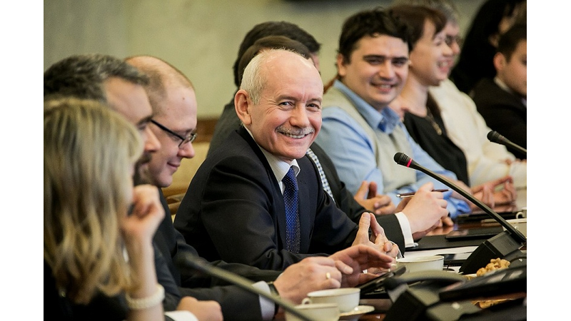 УФА, 30 дек 2014. /ИА «Башинформ», Илья Спиридонов/. 30 декабря в Доме Республики Президент Башкортостана Рустэм Хамитов провел встречу с представителями ведущих федеральных и региональных СМИ. Журналисты в течение двух часов общались с главой республики. В ходе встречи обсуждались вопросы профессионального образования, экономическая ситуация, ход подготовки к предстоящим международным саммитам ШОС и БРИКС, поддержка спорта, итоги Года культуры.