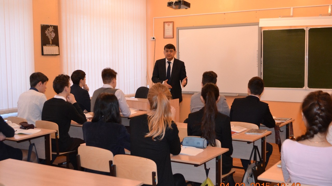 Флюр Асадуллин сменил амплуа руководителя ведомства на должность учителя истории. Урок проходил для десятиклассников уфимского лицея №21.