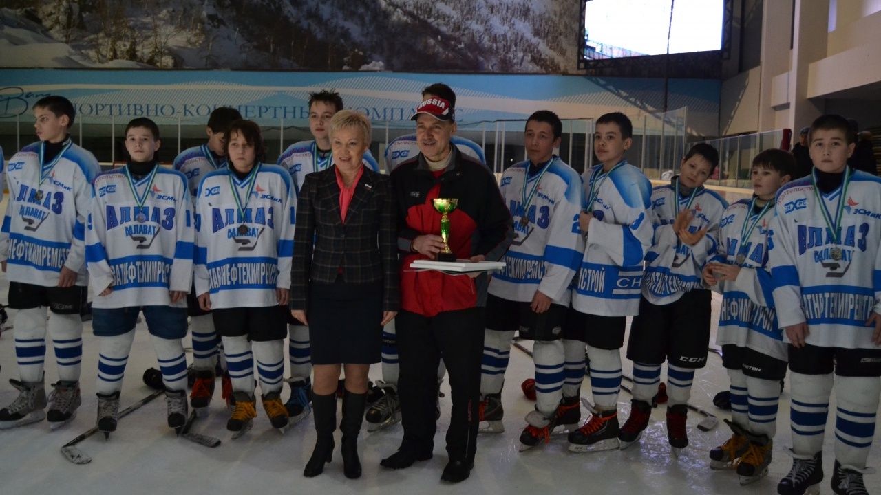 УФА, 7 фев 2015. /ИА «Башинформ», Арина Рахимкулова/. Депутат Госдумы от Башкортостана Рима Баталова в рамках региональной недели поддержала юных спортсменов республики. Парламентарий посетила хоккейные турниры, где вручила будущим чемпионам памятные подарки.