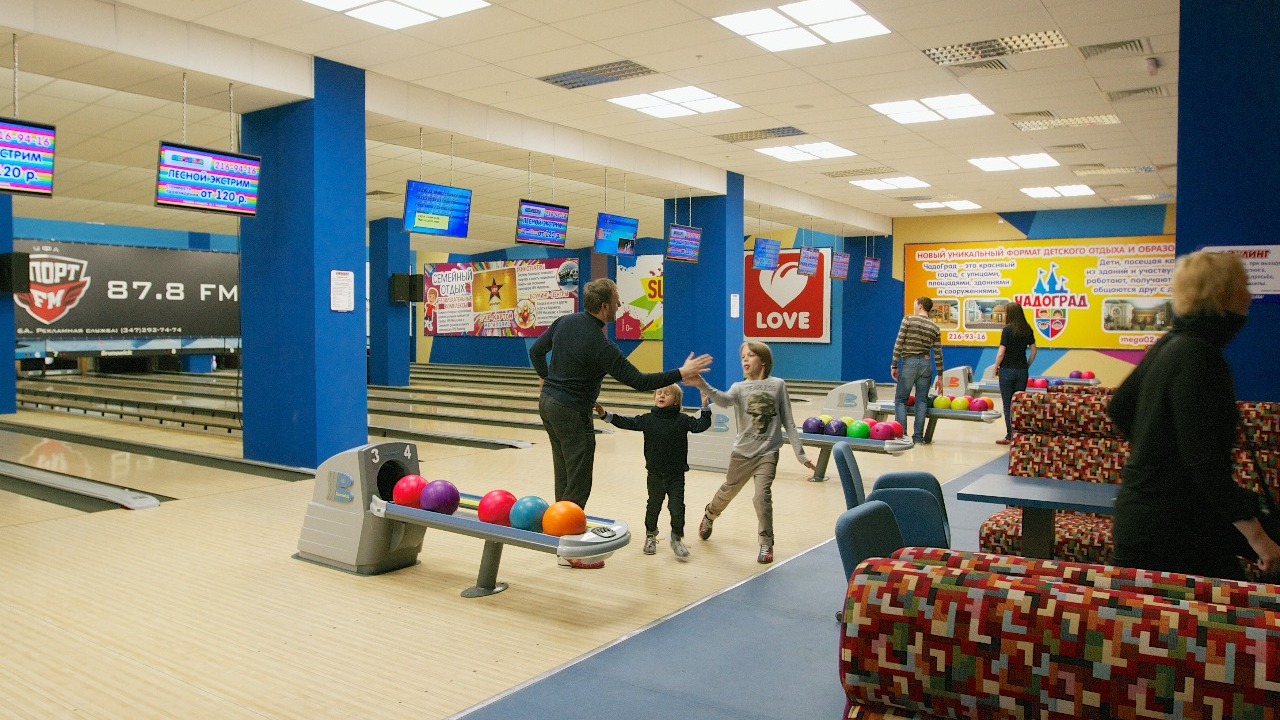 В боулинге комплекса все 12 дорожек оборудованы специальными бортиками для игры с детьми. По желанию родителей маленькими гостями займется аниматор - он развлечет их и, при необходимости, обучит азам игры.