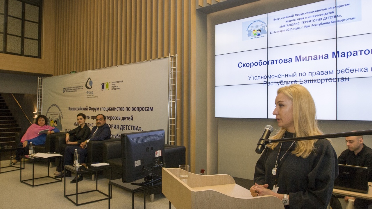 УФА, 11 мар 2015. /ИА «Башинформ», Гульфия Акулова/.11 марта в Уфе начал работу Всероссийский форум специалистов по вопросам защиты прав и интересов детей «Мегаполис. Территория детства». Его организаторами являются администрация Уфы, столичное Управление по опеке и попечительству, Благотворительный Фонд профилактики социального сиротства (г. Москва), Общественный фонд развития города.