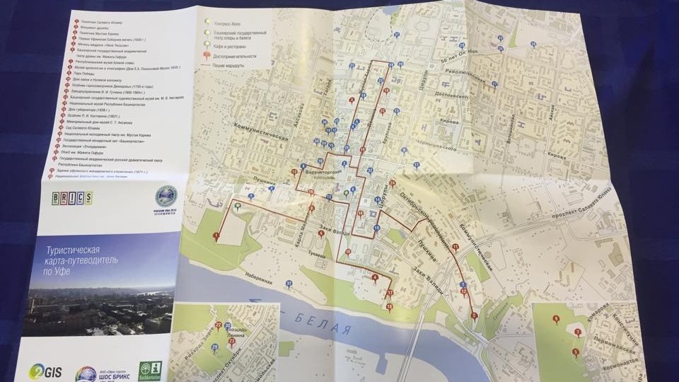 - На карте представлены достопримечательности Уфы, объекты питания. Она будет распространяться по объектам размещения участников международных саммитов, а также в ресторанах, кафе и на стойке Туристско-информационного центра в международном терминале аэропорта Уфы. Карты будут распространяться бесплатно, - рассказал директор ТИЦ РБ Иван Зорин.