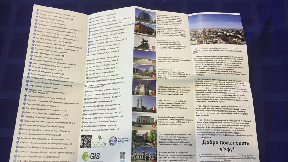 УФА, 1 апр 2015. /ИА «Башинформ», Артур Басыров/. В Уфе на выставке «Туризм. Спорт. Отдых. Здравницы» прошла презентация карты-путеводителя по достопримечательностям столицы республики. Ее подготовили Туристско-информационный центр Башкортостана (ТИЦ РБ) и компания 2ГИС в рамках информационного партнерства с Офис-группой «ШОС БРИКС 2015».