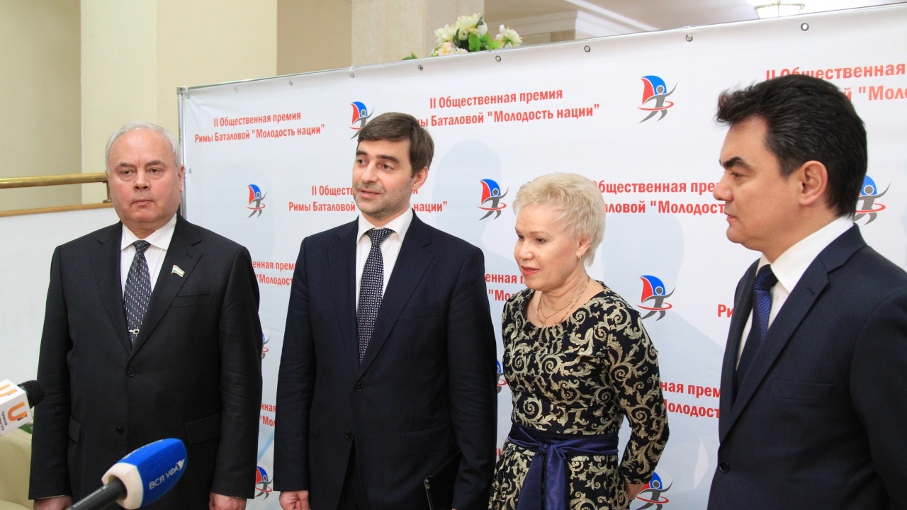 УФА, 4 апр 2015. /ИА «Башинформ», Арина Рахимкулова/. В Уфе состоялось награждение лауреатов II Общественной премии имени 13-кратной паралимпийской чемпионки, 18-кратной чемпионки мира, 43-кратной чемпионки Европы, заслуженного мастера спорта по легкой атлетике Римы Баталовой «Молодость нации». В церемонии приняли участие спортивная общественность, руководство министерств и ведомств республики, звезды мирового спорта. Специальными гостями стали заместитель председателя Госдумы Сергей Железняк, популярный певец, экс-участник группы «На-на» Владимир Левкин, российский телеведущий, автор программы «Сам себе режиссер» Алексей Лысенков. Также поздравить победителей в Уфу приехали помощник министра здравоохранения РФ Татьяна Клименко и председатель правления Национального Антинаркотического Союза Никита Лушников.
