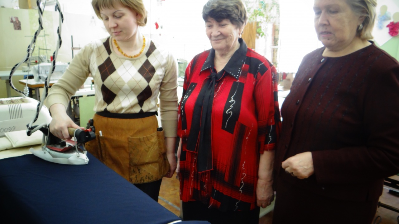 Одним из условий краткосрочного обучения было именно наличие навыков шитья, ведь за пятнадцать часов, отведенных на курс, невозможно стать портнихой «с нуля». Преподаватель Юлия Кондратьева довольна своими взрослыми ученицами.
