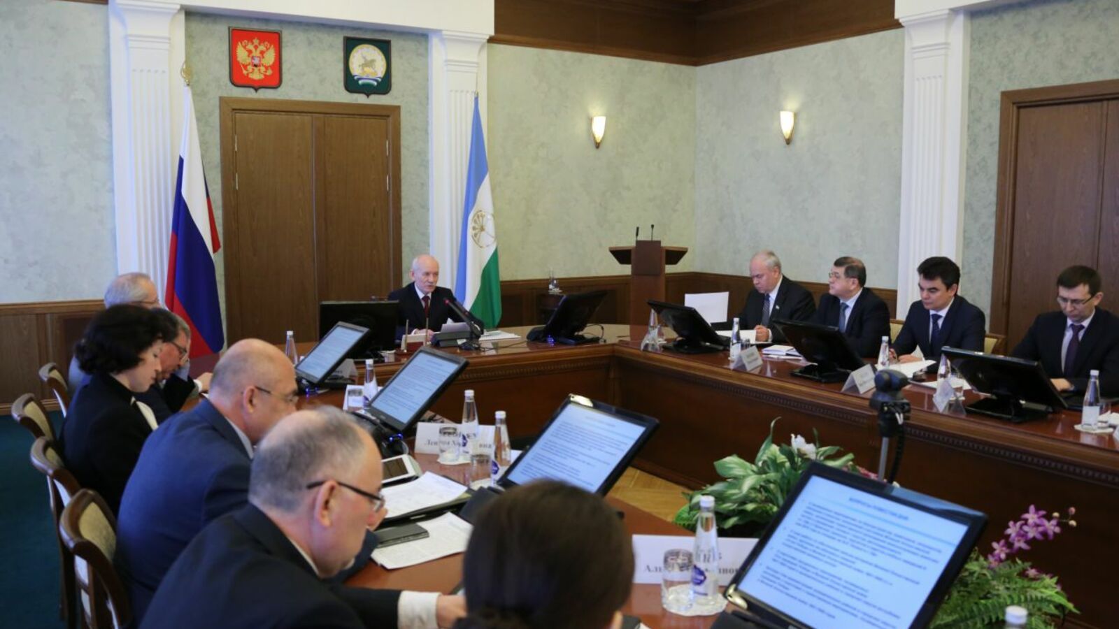 УФА, 24 апр 2015. /ИА «Башинформ», Илья Спиридонов/. 24 апреля в Доме Правительства республики Глава Башкортостана Рустэм Хамитов провел четвертое заседание Республиканского оргкомитета по подготовке и празднованию 70-й годовщины Победы в Великой Отечественной войне. В нем приняли участие члены Правительства РБ, руководители профильных министерств и ведомств, а также представители общественных организаций.