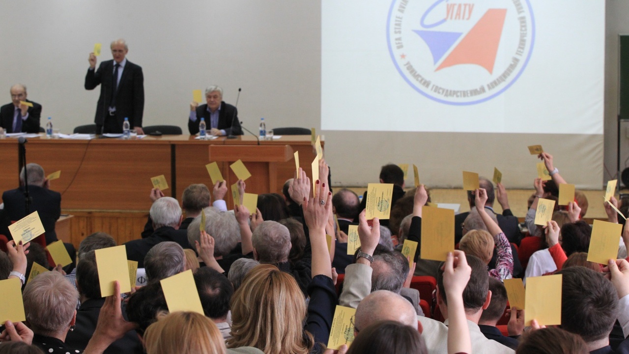 На конференцию по выбору ректора, проходившую в кинозале шестого корпуса УГАТУ, были делегированы 150 научно-педагогических работников, представителей других категорий сотрудников и обучающихся в УГАТУ. Перед началом конференции были зарегистрированы 147 делегатов.