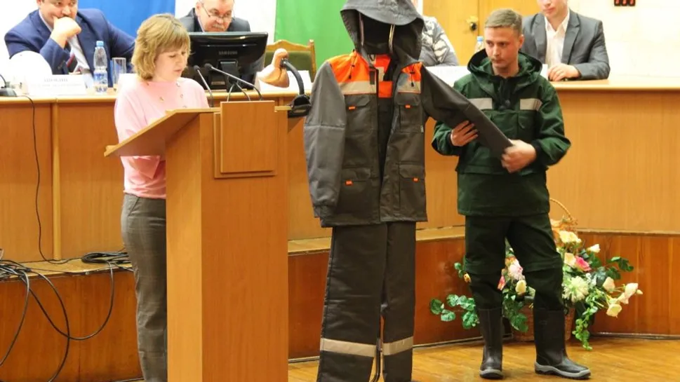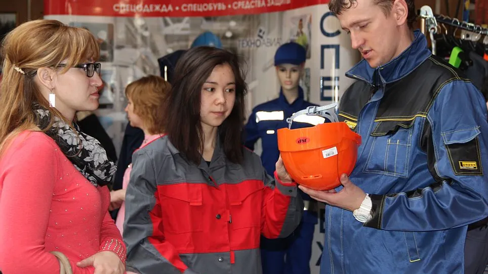 Перед началом мероприятия в холле состоялась выставка спецодежды, спецобуви и других средств индивидуальной защиты. На ней участники продемонстрировали, как с помощью современного оборудования можно спасти человека при работе на высоте.
