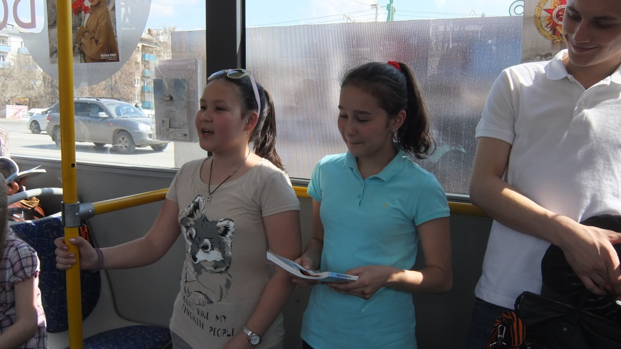 Вместе с писателями в необычном троллейбусе ехали ученики уфимской школы №100 со своим учителем Татьяной Глуховой - участники литературного содружества «КоРифеи», основанного «Бельскими просторами». Они декламировали любимые стихотворения о Великой Отечественной войне и Победе - трогательно, с сильным чувством. По рассказам свидетелей, в один момент, растроганные проникновенным чтением, пассажиры в едином порыве запели лучшие песни тех лет: «Катюшу», «День Победы», «Вставай, страна огромная!».
