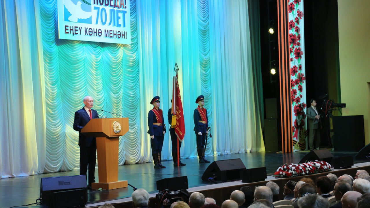 УФА, 8 май 2015. /ИА «Башинформ», Илья Спиридонов/. 8 мая в Уфе Глава Башкортостана Рустэм Хамитов выступил на торжественном собрании, посвященном 70-й годовщине Победы в Великой Отечественной войне.