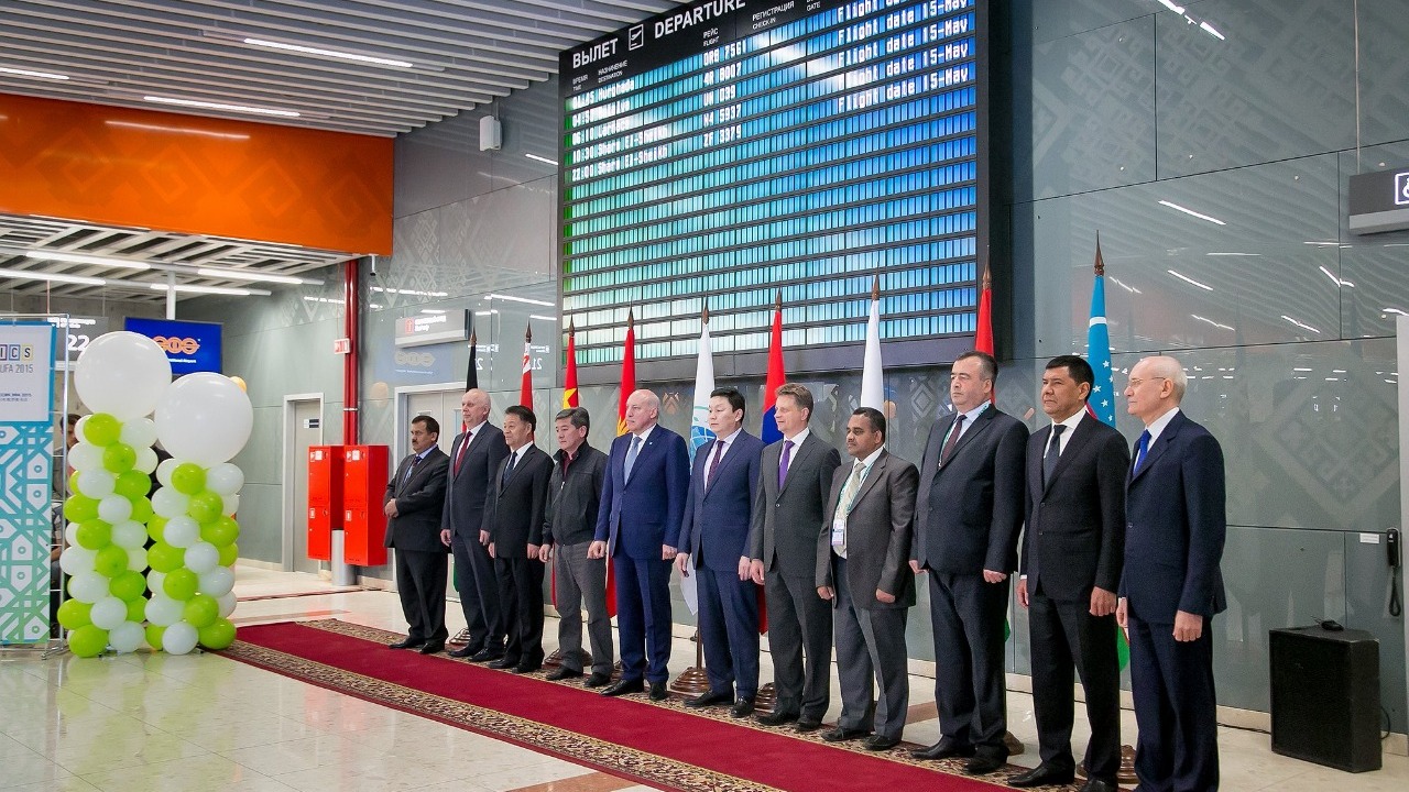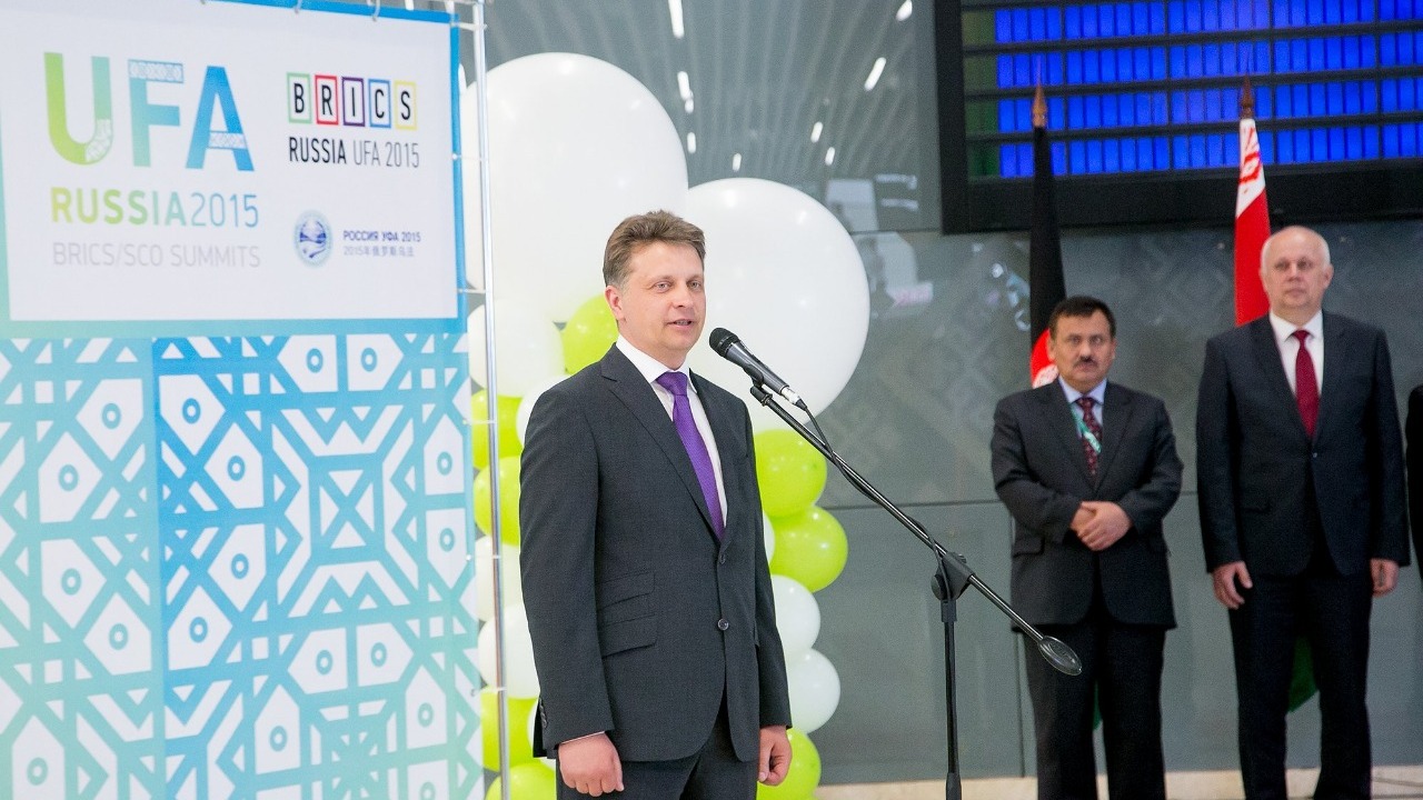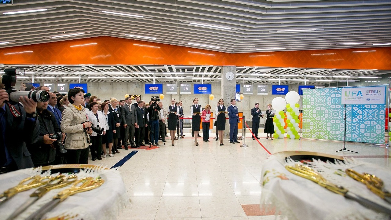 УФА, 14 май 2015. /ИА «Башинформ», Илья Спиридонов/. 14 мая состоялось официальное открытие нового терминала Международного аэропорта «Уфа», в котором приняли участие министры транспорта государств – членов Шанхайской организации сотрудничества (ШОС).