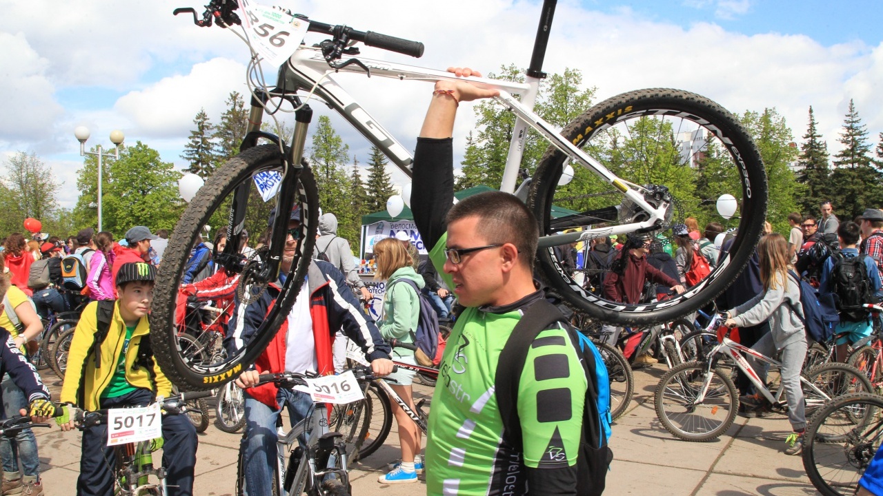 УФА, 17 май 2015. /ИА «Башинформ», Артур Басыров/. Более семи тысяч человек приняли участие в велопробеге «Дня 1000 велосипедистов». Регистрация участников фестиваля началась в 11.30 часов, старт пробегу был дан в 13 часов.
