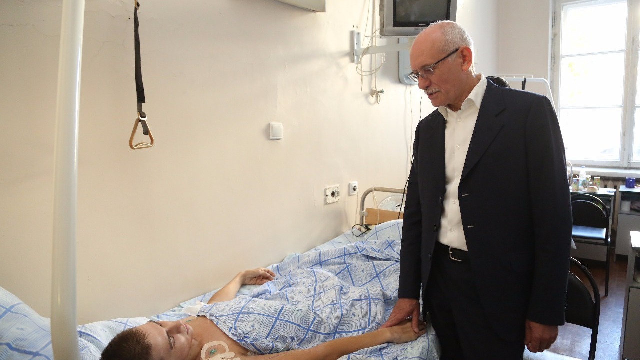 Состояние Владимира Петрова удовлетворительное, его встреча с Главой региона состоялась во время прогулки в парке госпиталя. Рустама Набиева недавно перевели из реанимационного в хирургическое отделение. У него пока строгий постельный режим, поэтому с ним Рустэм Хамитов пообщался в палате.