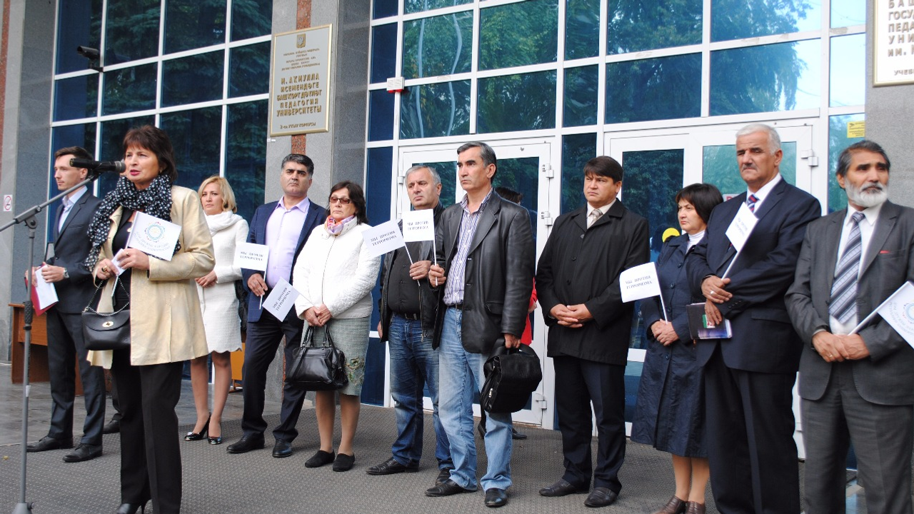 УФА, 3 сен 2015. /ИА «Башинформ», Гульфия Акулова/. 3 сентября в Уфе, на площади им. М.Акмуллы, состоялся молодежный флешмоб «Мы против терроризма», посвященный Дню солидарности в борьбе с терроризмом и трагическим событиям в Беслане.