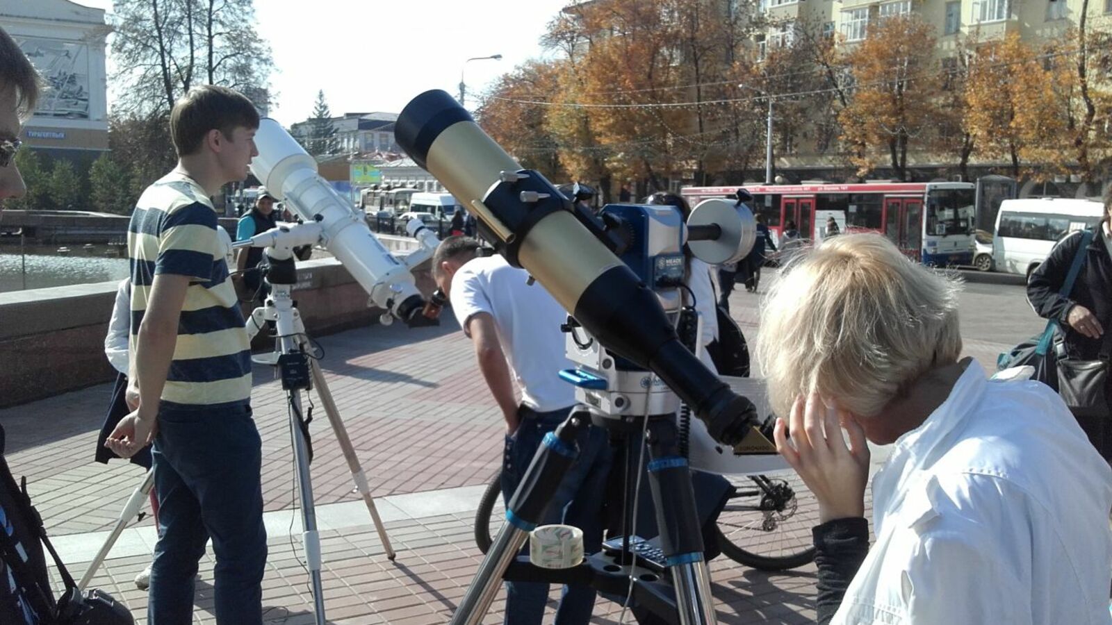 УФА, 25 сен 2015. /ИА «Башинформ», Ксения Калинина/. Уфимцы 25 сентября на фестивале науки в телескоп рассмотрели на Солнце пятна и протуберанцы. У телескопов столичного планетария, которые разместились на площадке перед ГКЗ «Башкортостан», собралась очередь желающих увидеть вблизи единственную звезду Солнечной системы.