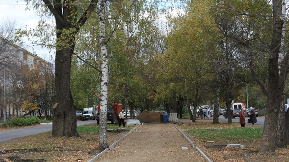 УФА, 5 окт 2015. /ИА «Башинформ», Гульфия Акулова/. В Калининском районе Уфы продолжается строительство нового сквера по улице Свободы. Как сообщает пресс-служба столичной мэрии, благоустройство территории ведется на участке от улицы Первомайской до улицы Интернациональной. Новую 300-метровую зону отдыха уже прозвали «черниковским Арбатом», основные строительные работы здесь планируется завершить до начала зимы.