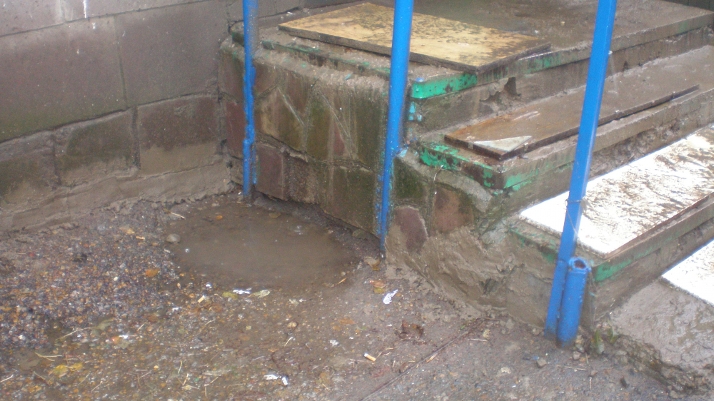 В результате выездной проверки было установлено, что в доме проведены ремонтные работы - заменен участок выпуска канализации от дома до смотрового колодца, принимаются меры по осушению водомерного узла, подвал которого из-за аварийной ситуации напитался сточными водами. Инспекцией обнаружены нарушения - просадка отмосток вокруг здания, неисправность остекления наружных рам лестничных клеток, намокание кирпичной кладки фасада дома из-за дождя, неблагоустроенная придомовая территория.