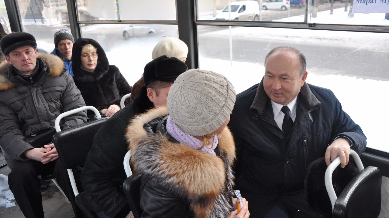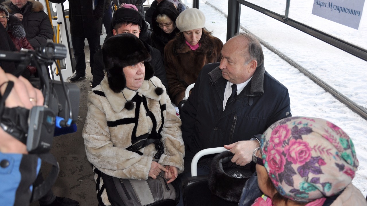 УФА, 1 дек 2015. /ИА «Башинформ», Арина Рахимкулова/. В Уфе в Единый день приема граждан необычную встречу с жителями провел секретарь местного отделения партии «Единая Россия» Орджоникидзевского района столицы, глава администрации района Марат Галиуллин. Он принимал обращения горожан в трамвае, где разместилась выездная приемная. Транспортное средство курсировало по маршруту «улица Космонавтов — АвтоВАЗ».