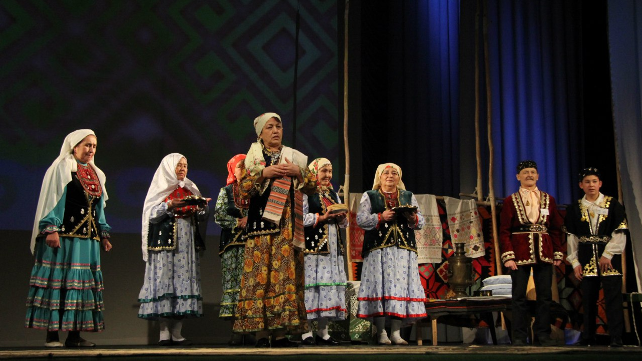 Третье место в конкурсе досталось семье Саитовых, представлявших башкир рода мин из Альшеевского района. Команда рассказала об истории своего рода, показала театральную постановку, описывающую обряд при рождении в семье ребенка.
