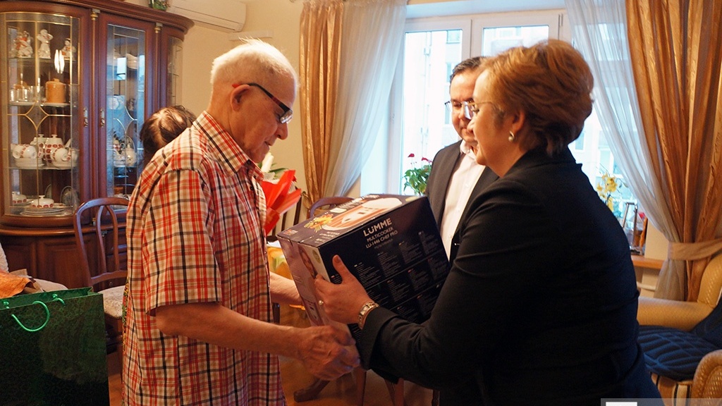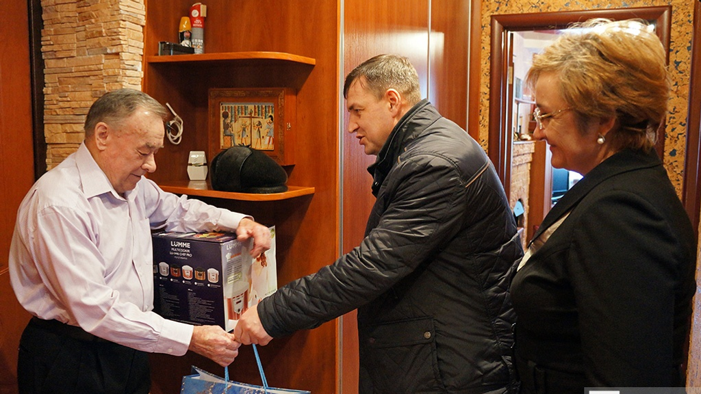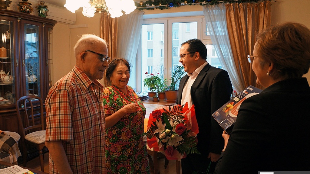 Одним из первых услышал в свой адрес теплые слова и пожелания доброго здоровья Гумер Теляшев. С поздравлениями к нему приехали начальник городского Управления социальной политики Светлана Галеева и глава администрации Кировского района Уфы Динар Халилов. Гумер Гарифович Теляшев - Герой Социалистического Труда, «Заслуженный рационализатор БАССР», «Заслуженный химик Башкирской ССР», «Почетный нефтяник РФ», доктор технических наук, профессор, автор более 170 научных трудов и около 100 изобретений. За большие успехи в труде, инициативность, активное участие в общественной жизни он занесен в Книгу Почета ЦК ВЛКСМ, награжден медалью «За доблестный труд».