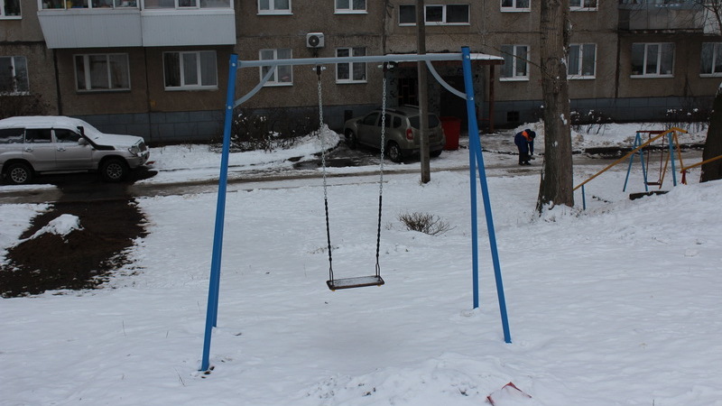 Между домами №№ 17/2 и 17/3 по улице Российской на радость детям и их родителям развернулся настоящий игровой комплекс, состоящий из ярких качелей, карусели, качалки-балансира, песочницы и многофункциональной горки.