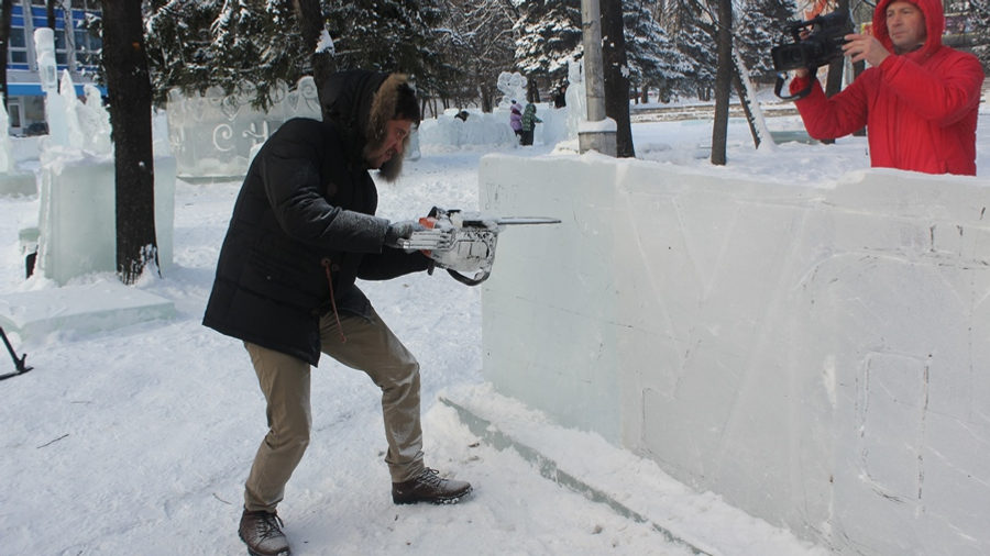 Блогеры создали на городской площади арт-объект #УФА изо льда
