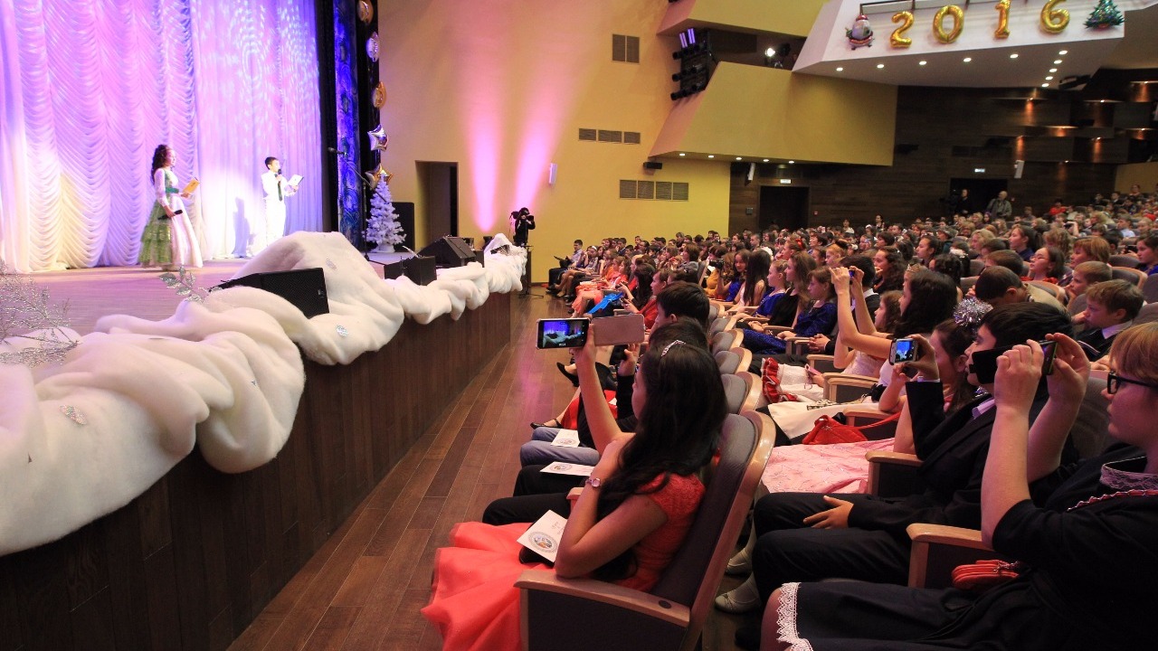 УФА, 22 дек 2015. /ИА «Башинформ», Гульфия Акулова/. 22 декабря в Уфе, в Государственном концертном зале «Башкортостан», на ежегодную новогоднюю елку Главы республики собрались 780 учащихся из городов и районов региона. На мероприятие пригласили отличников учебы, победителей предметных олимпиад, спортивных мероприятий, лауреатов фестивалей художественной самодеятельности, детей из семей военнослужащих и сотрудников органов внутренних дел, погибших при исполнении служебного долга, а также детей из многодетных малоимущих семей.