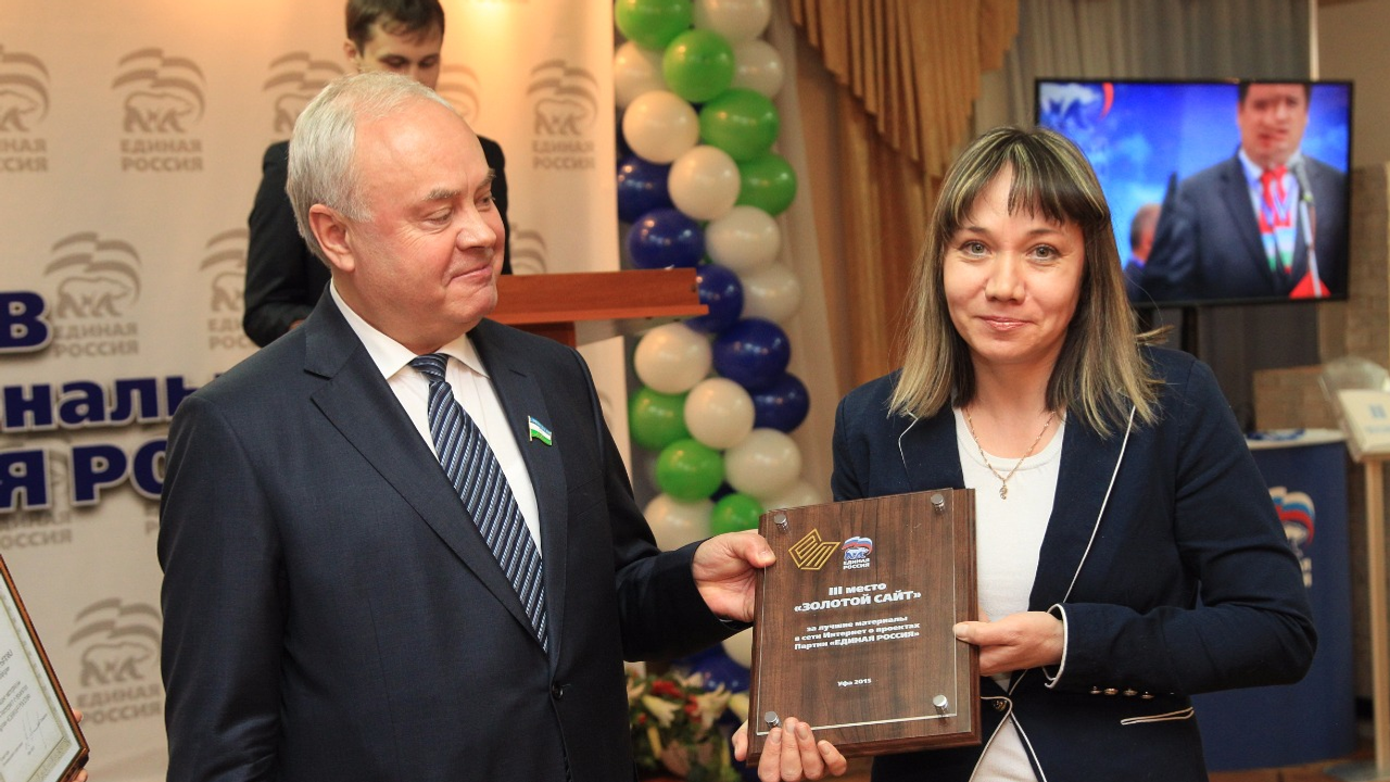 УФА, 25 дек 2015. /ИА «Башинформ», Арина Рахимкулова/. Агентство «Башинформ» признано «Золотым сайтом» по итогам конкурса на освещение работы «Единой России» в 2015 году. Дипломы и ценные призы победителям вручил Секретарь Регионального отделения партии, Председатель Госсобрания Башкортостана Константин Толкачев. Церемония прошла в рамках первого форума проектов Регионального отделения «Единой России».