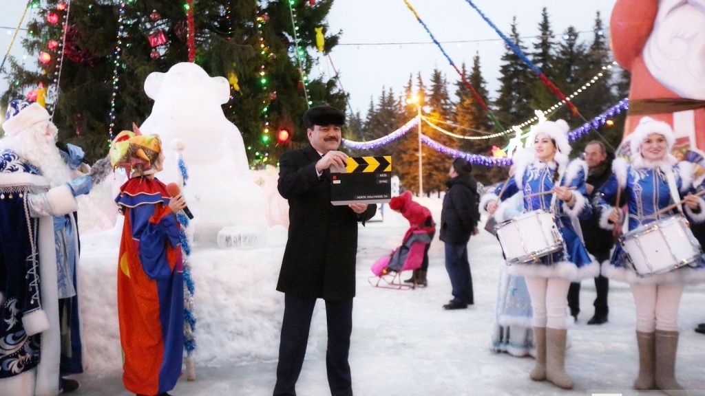 Заместитель главы столичной администрации Сынтимир Баязитов поздравил присутствующих с наступающим 2016 годом и пожелал успехов и здоровья. Символично, что в преддверии Года кино, замглавы «зажег» огни главной столичной елки при помощи кинохлопушки. Праздник завершился новогодним флешмобом.
