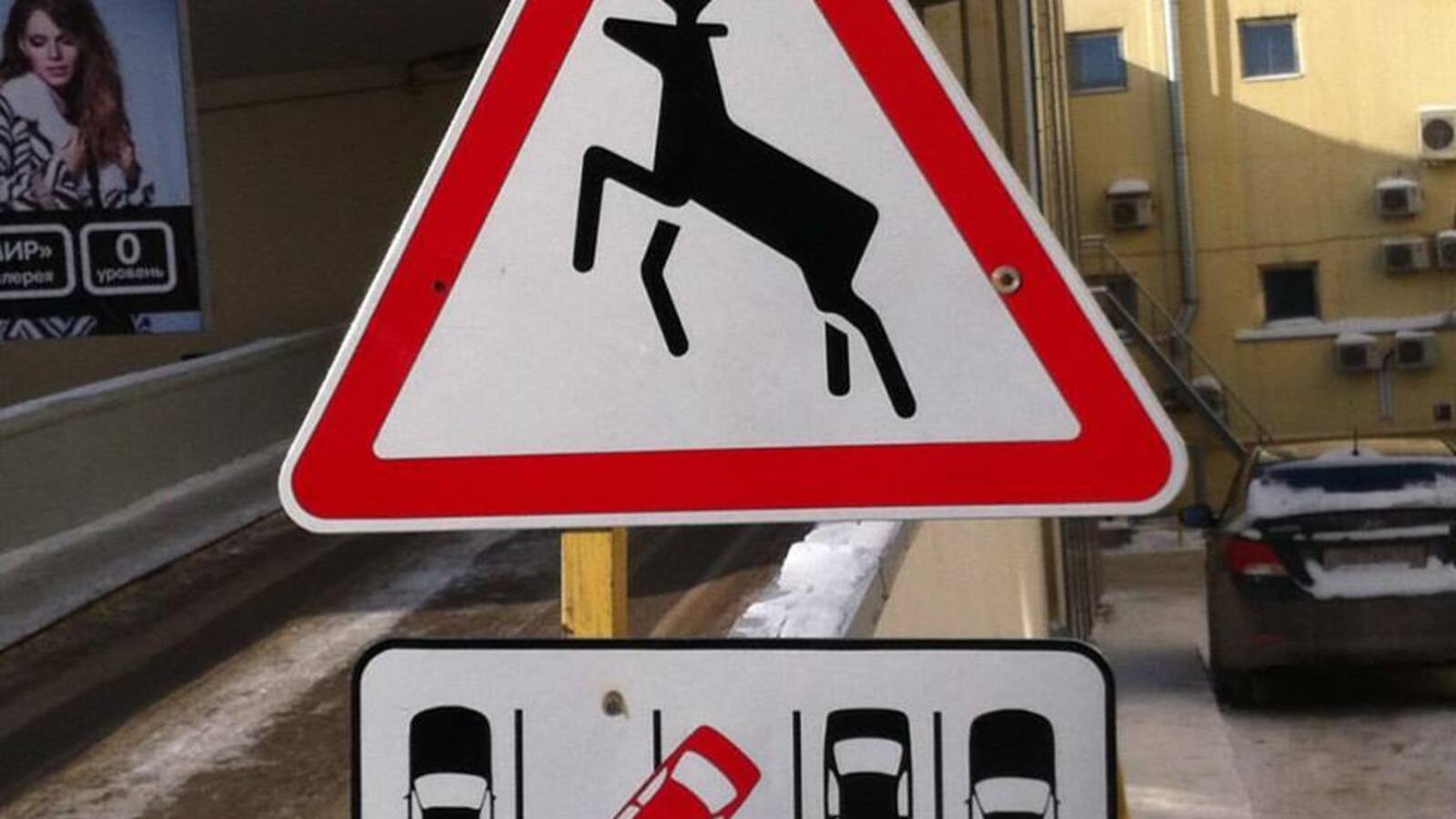 УФА, 29 янв 2016. /ИА «Башинформ», Артур Басыров/. В Уфе с помощью оригинальной таблички и специального предупреждающего знака решили бороться с неправильно паркующимися водителями. Табличка установлена у въезда на парковку одного из торговых центров. Помимо этого, руководство комплекса решило позаботиться о безопасности своих посетителей, установив знак «Осторожно, дикие животные».