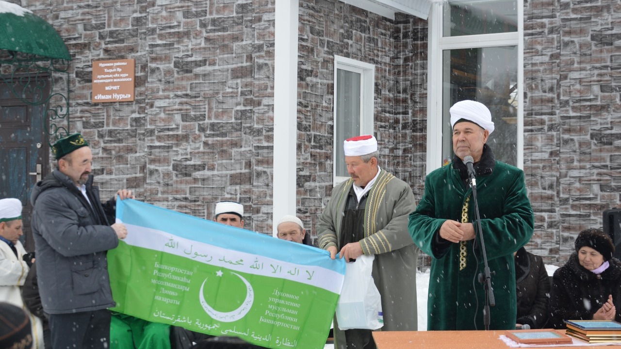 УФА, 9 фев 2016. /ИА «Башинформ», Арина Рахимкулова/. В Башкортостане открылась мечеть «Иман нуры». Храм построен в административном центре Нуримановского района - селе Красная Горка. На торжественном открытии присутствовали муфтий Духовного управления мусульман республики Нурмухамет Нигматуллин, официальные лица, имам-хатибы местных мечетей и жители села.