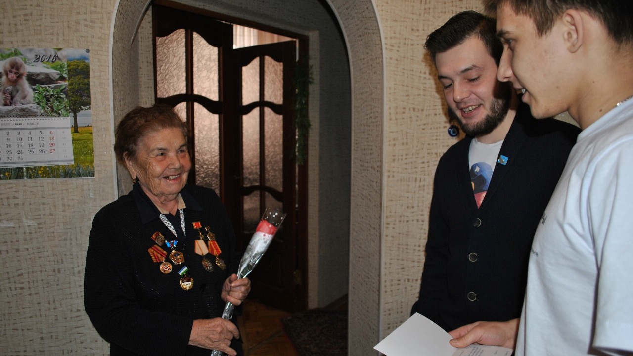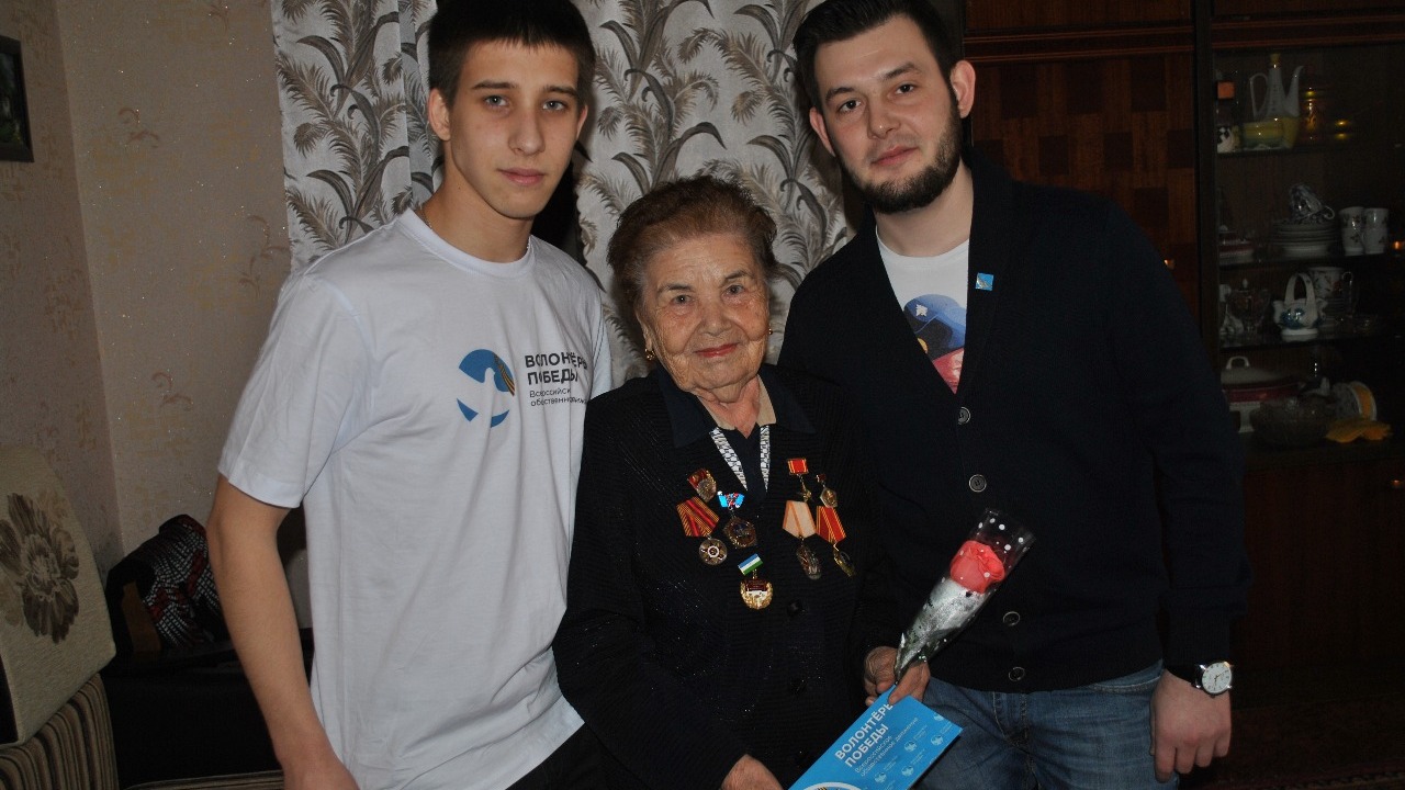 УФА, 8 мар 2016. /ИА «Башинформ», Сергей Захаров/. В Октябрьском добровольцы всероссийского общественного движения «Волонтеры Победы» по Башкортостану совместно с активистами городского Дворца молодежи и поисковиками республики поздравили с праздником 8 Марта женщин - ветеранов Великой Отечественной войны, тружениц тыла, вручили им подарки, пожелали крепкого здоровья и долгих лет жизни.