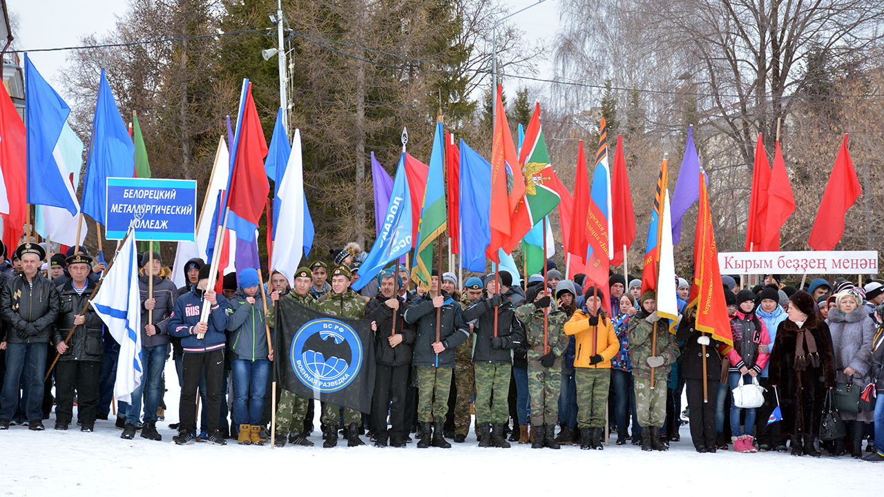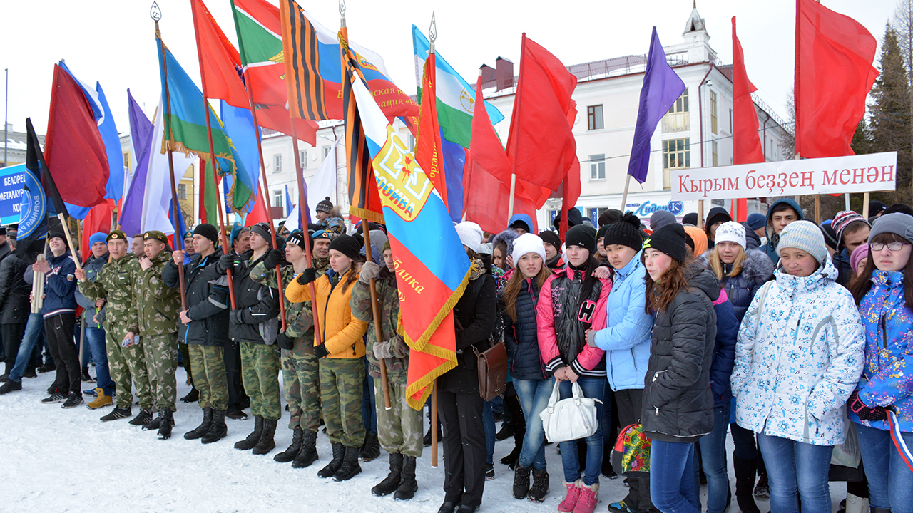 В Белорецке более трех тысяч человек собрались на главной площади Металлургов. Среди них – студенты средних и высших учебных заведений, представители общественных организаций и профсоюзов, трудовых коллективов, молодежных и патриотических объединений, сотрудники образовательных и культурных учреждений, жители города.