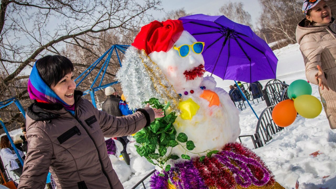УФА, 28 мар 2016. /ИА «Башинформ», Алим Фаизов/. В Октябрьском прошла ежегодная и уже полюбившаяся всем горожанам игра - «Битва снеговиков», организованная городским Дворцом молодежи.